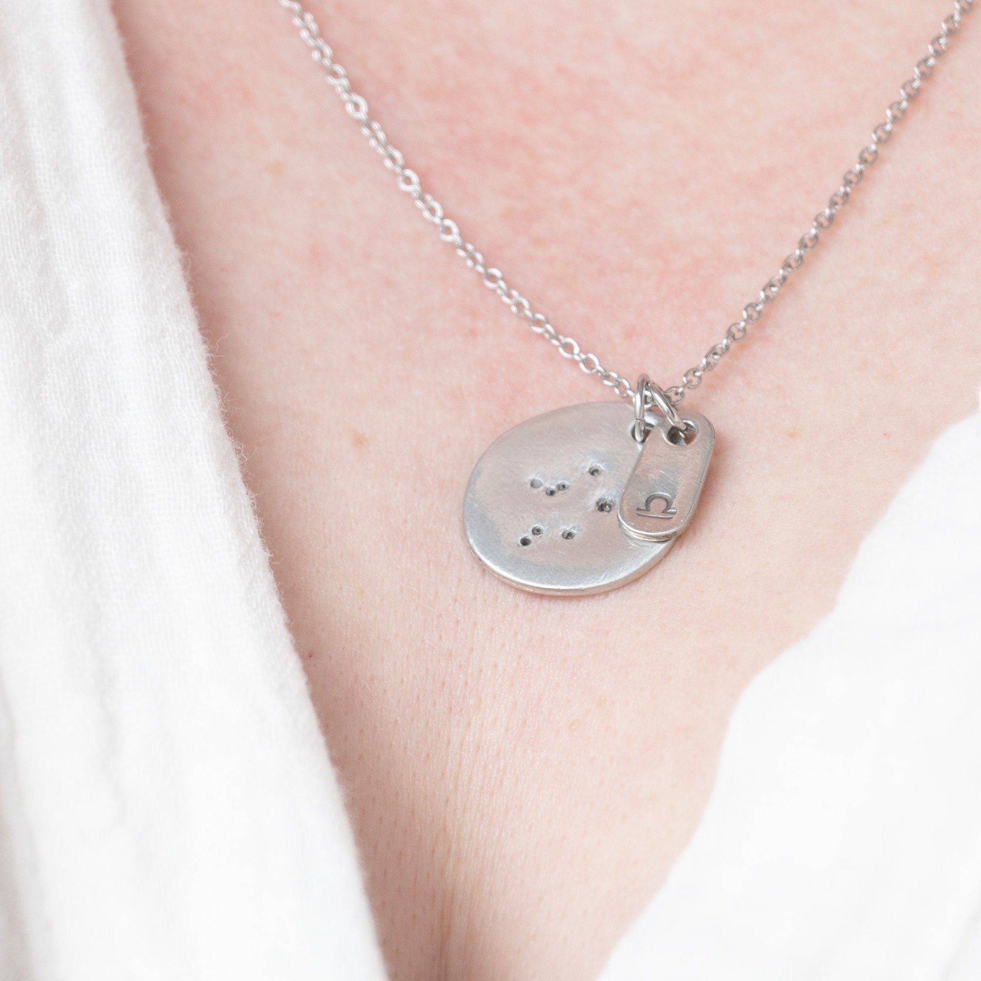 Featuring the Libra constellation and symbol, this beautiful necklace is the perfect everyday accessory for your favorite Libra.